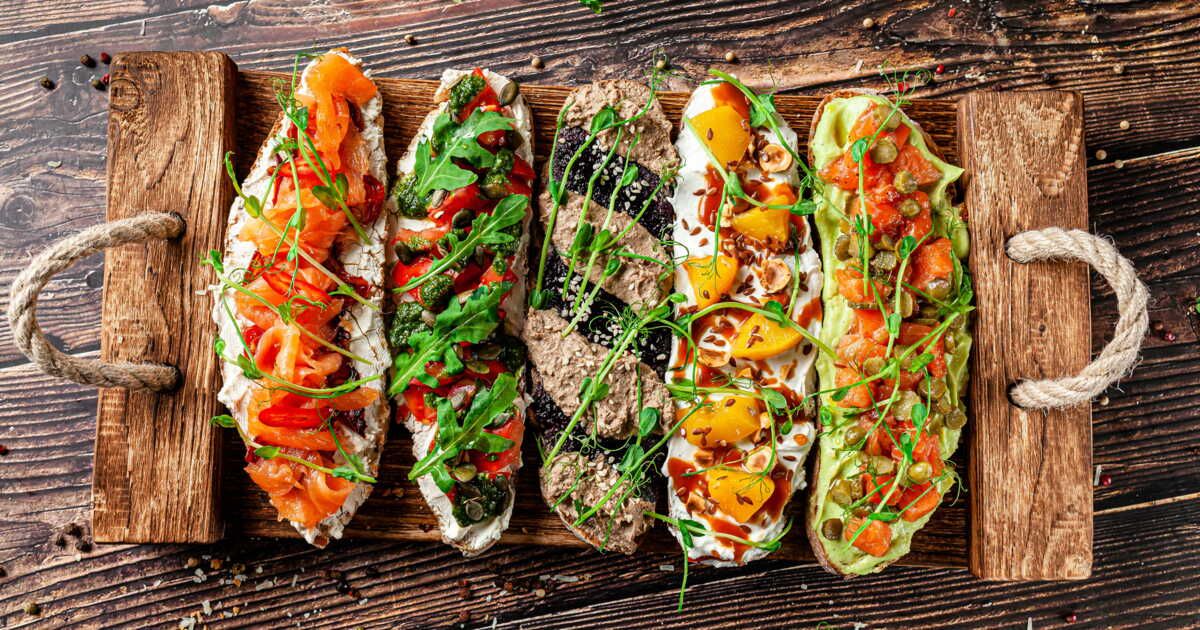 Bruschettas et tartines colorées et végétariennes