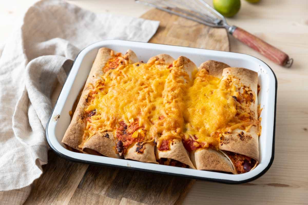 - Préchauffez votre four à 180°C. Garnissez les tortillas de poulet et de chili, roulez-les et placez-les dans un plat. Saupoudrez de cheddar râpé et faites gratiner au four pendant 15 minutes. Servez chaud avec une salade verte.