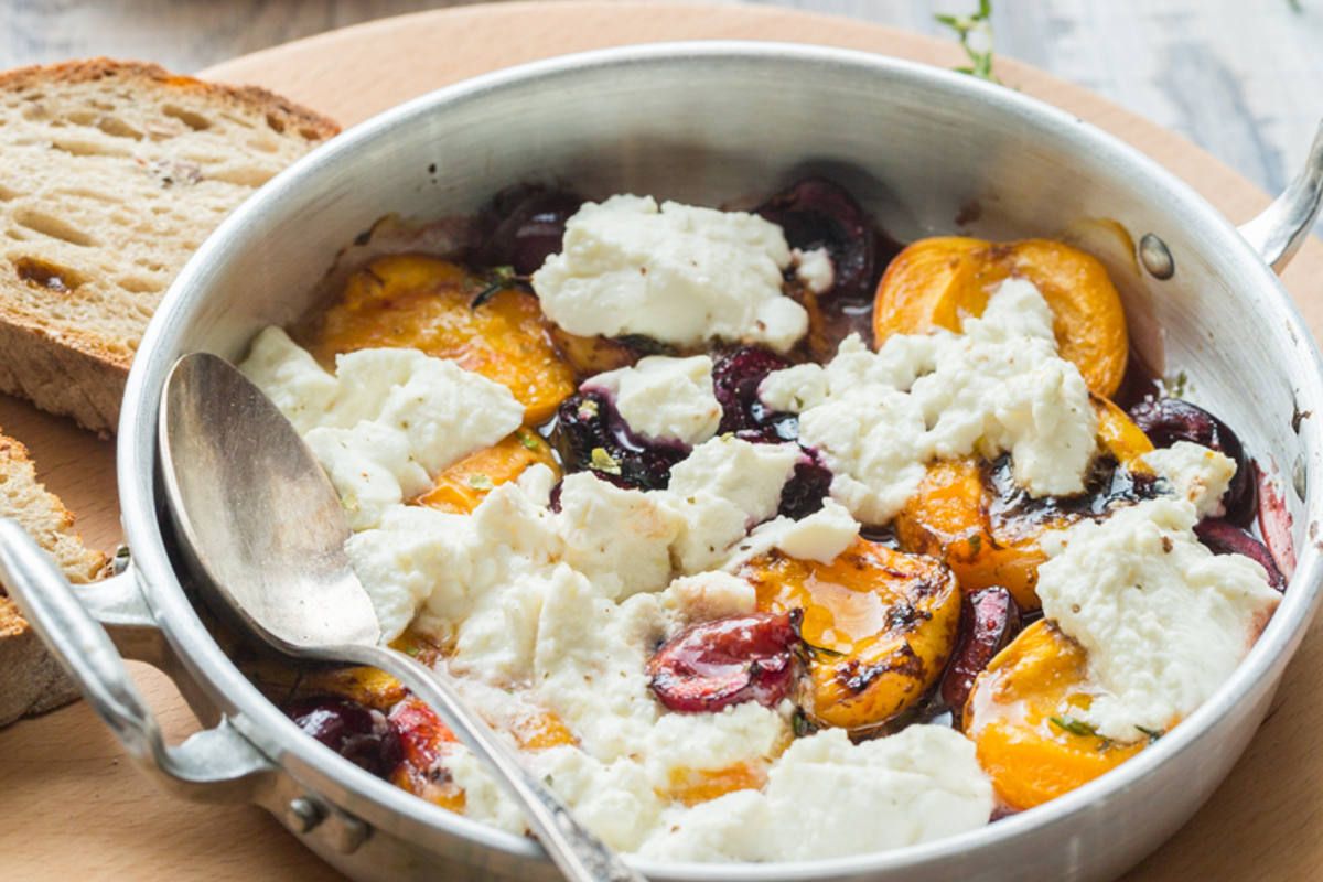 Recette : Abricots et cerises rôtis au thym et à la ricotta