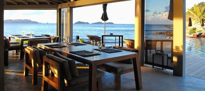 Le cadre : Surplombant la baie Shell Beach, cet hôtel offre un cadre paisible. Chaque repas est une expérience culinaire sous l'œil attentif du chef Emmanuel Motte.